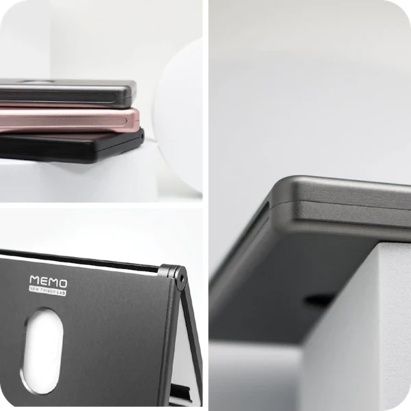 In addition to its durability, MEMO is available in three sophisticated finishes – Charcoal Black, Slate Gray, and Gilded Rose. The colors add a touch of style to MEMO’s sleek and minimalist design.