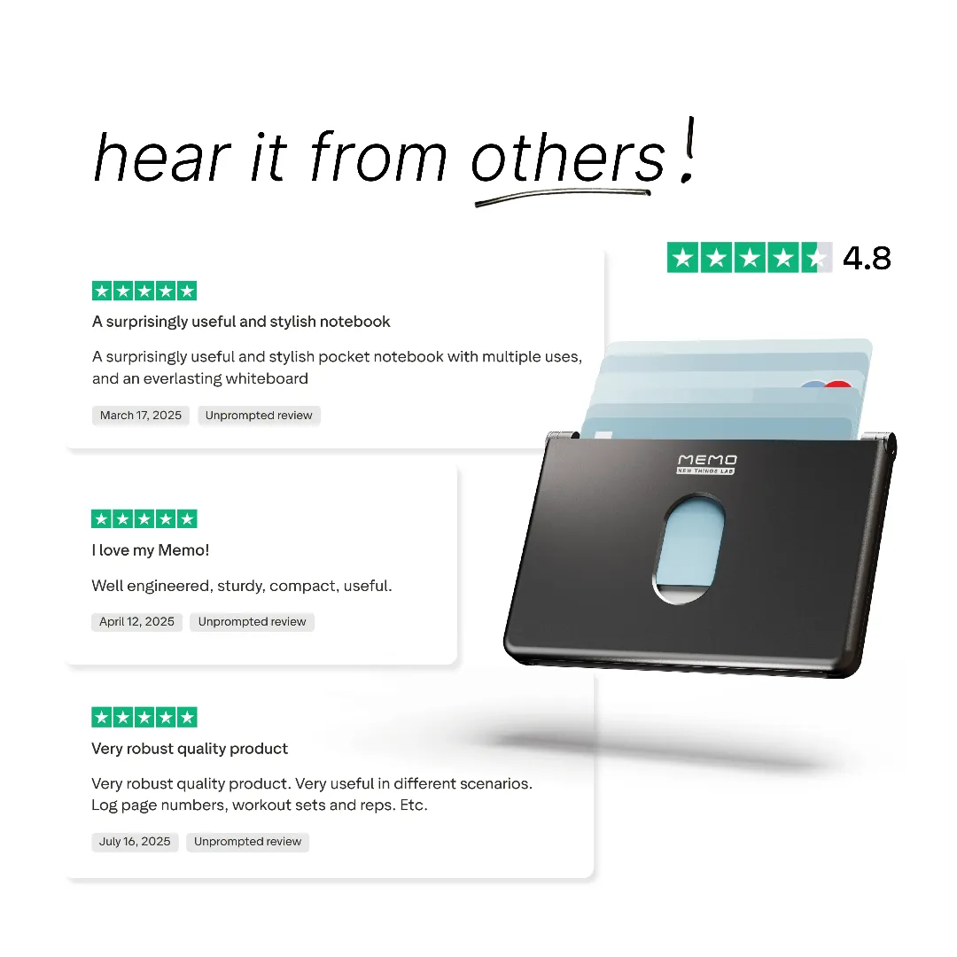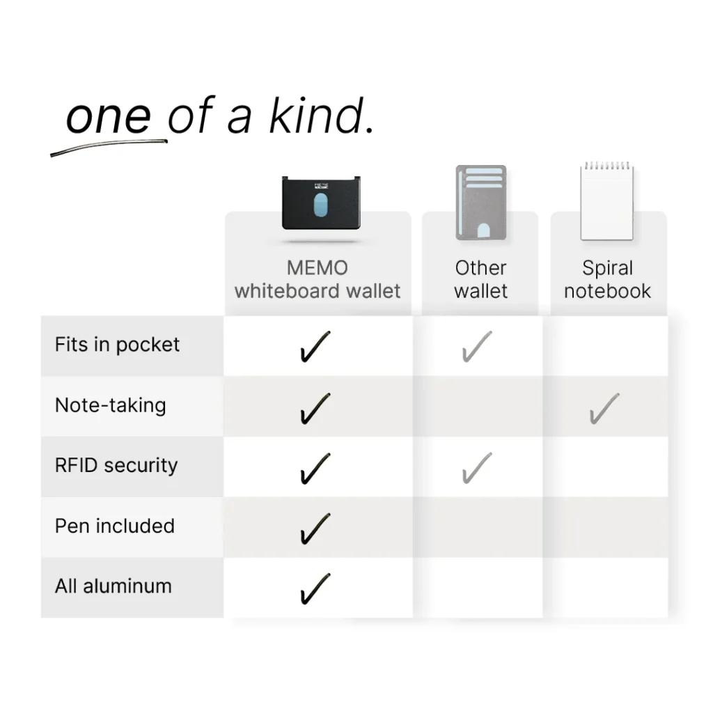 MEMO is the distraction-free notebook & wallet combination that is always with you to capture ideas, lists and to do’s.